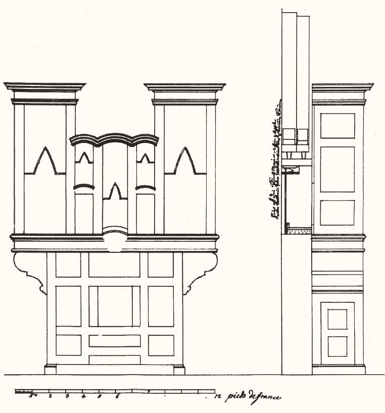 L’ancien orgue du couvent des Unterlinden, tel qu’il a été dessiné par Johann Andreas Silbermann
